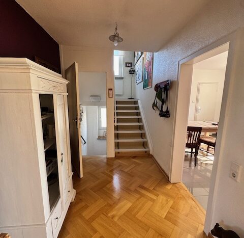 Im 1. und 2. Obergeschoss befindet sich die ca. 150 m² große 4 1/2 Zimmerwohnung mit Küche und anliegendem Abstellraum, sehr großem Wohn-/Essbereich mit direktem Zugang zur zweiten Terrasse, drei Schlafzimmern und einem großen Bad. Vom oberen Stockwerk gibt es einen ebenfalls bequemen Zugang zum großzügigen (noch nicht ausgebauten) Dachboden.
