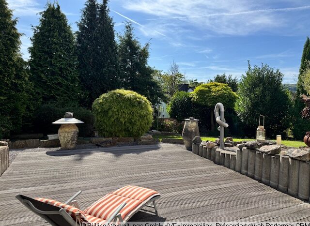 Der nach Süden ausgerichtete Garten ist schön angelegt und von der Straße aus weder einsehbar, hoher Freizeitwert und viel Privatsphäre sind garantiert.