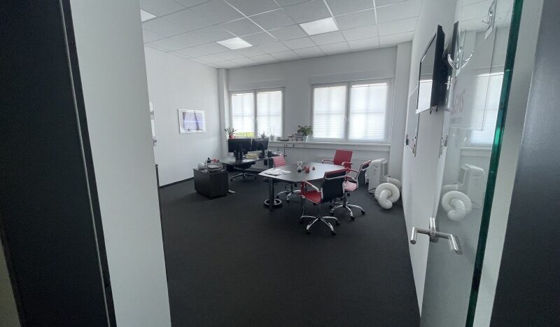 Modernste Büroräume mit Sozialräumen sowie eigener Kantine, direkte Wege zu den Hallen und perfekt angeordnete Büro und Verwaltungsräume machen diese Immobilie aus. Das Gebäude ist im gesamten Zusammenhängend und in sich begehbar. Der Mix aus historischer Bauweise und moderner Architektur ist hier perfekt umgesetzt worden.