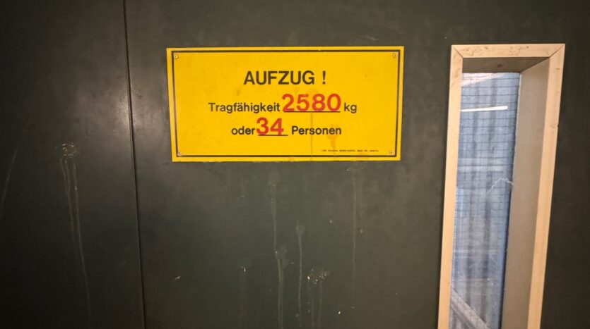 Die Tiefgarage mit 9 Stellpätzten ist durch einen Lasten(PKW) Aufzug zu erreichen. Der Aufzug fährt bis in das 1. Obergeschoss!!!