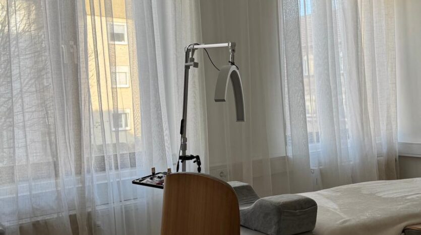 Der Raum ist hell und ruhig gelegen. Eine Behandlungsliege ist vorhanden und kann bei Bedarf genutzt werden.